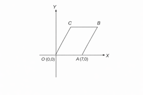 Q.21 In the figure given, OABC is a parallelogram. The area of the parallelogram is 21 sq units and the point C lies on the line \( x = 3 \). Find the coordinates of B.