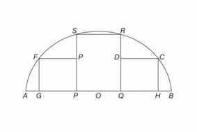 Q.8 In the following figure there is a semicircle with centre \( O \) and diameter AB (= 2r). PQRS is a square of maximum possible area. P and Q lie on the diameter AB and R, S lie on the arc of the semicircle. There are two more squares of maximum possible area EFGP and CDQH. What is the sum of lengths of RC and FS?